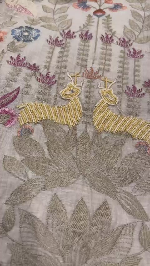 Pure Jamdani Fabric with thread and handwork motif. Dupatta with block and handprint details